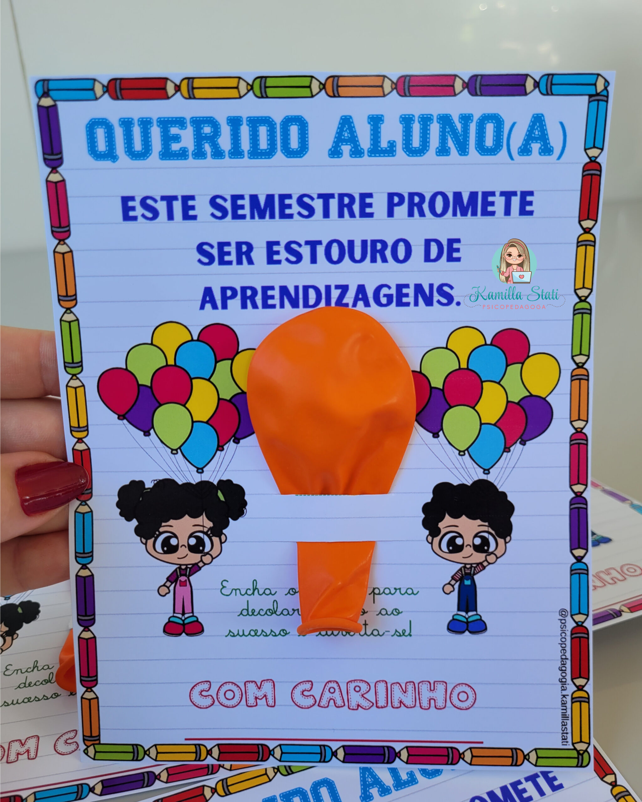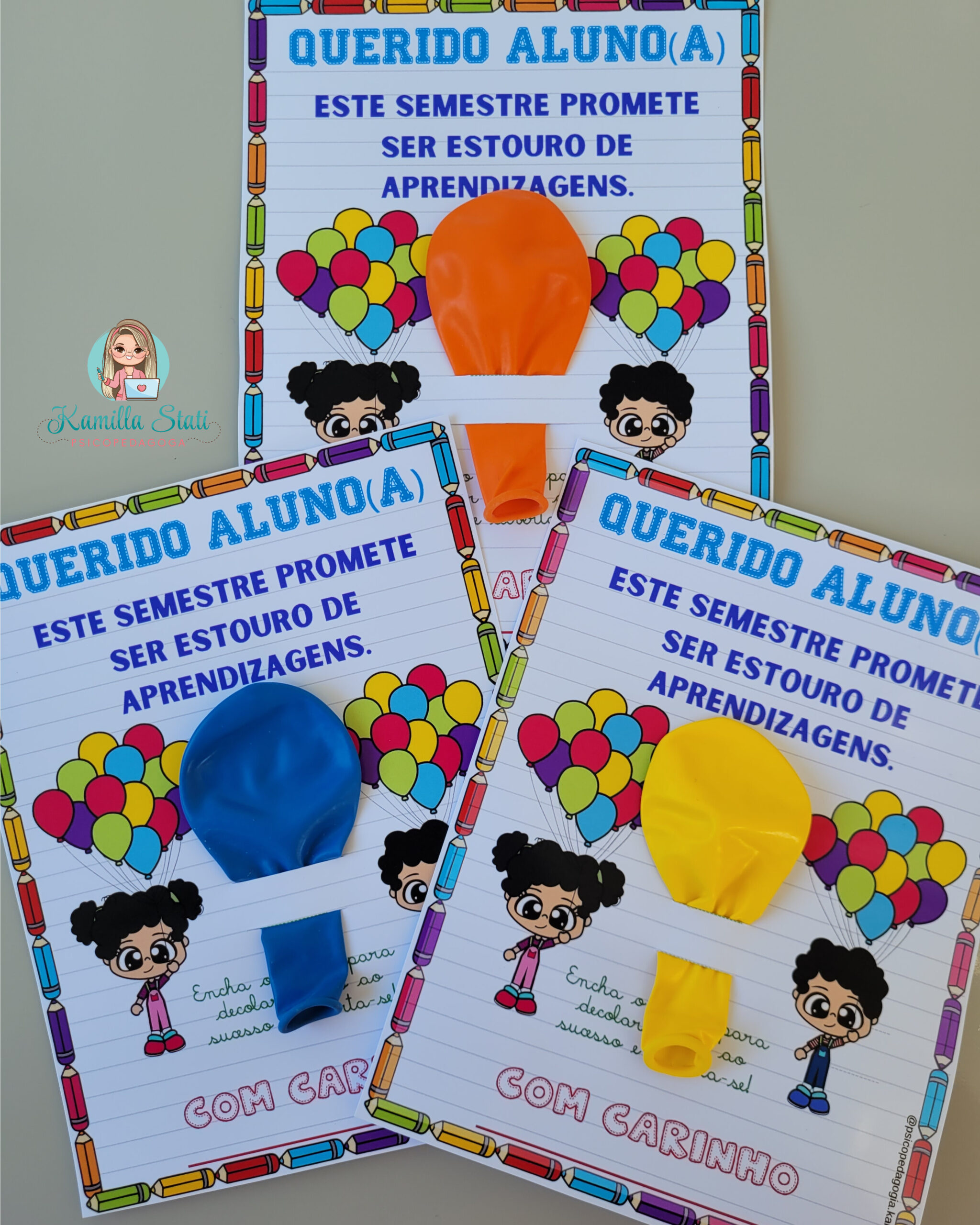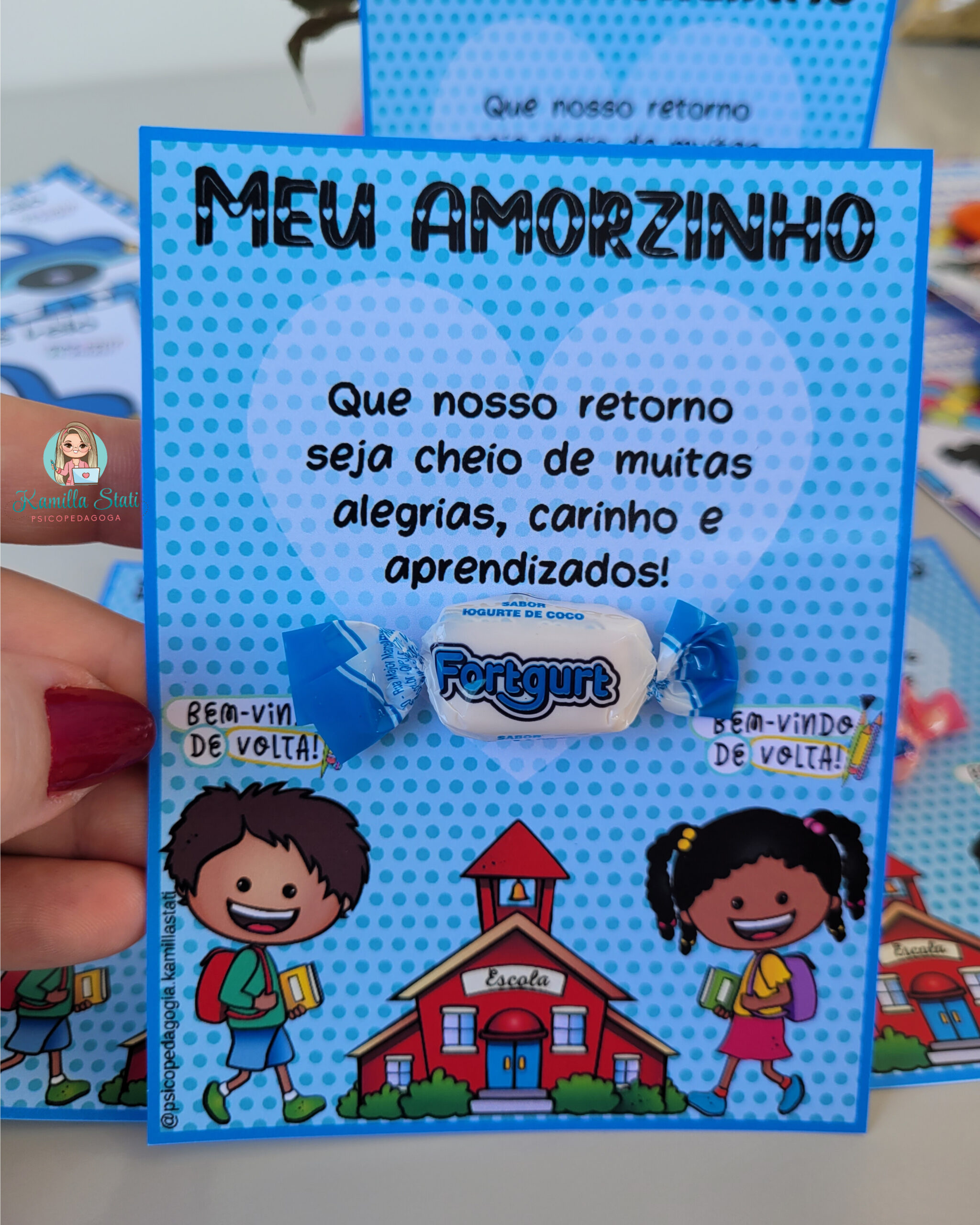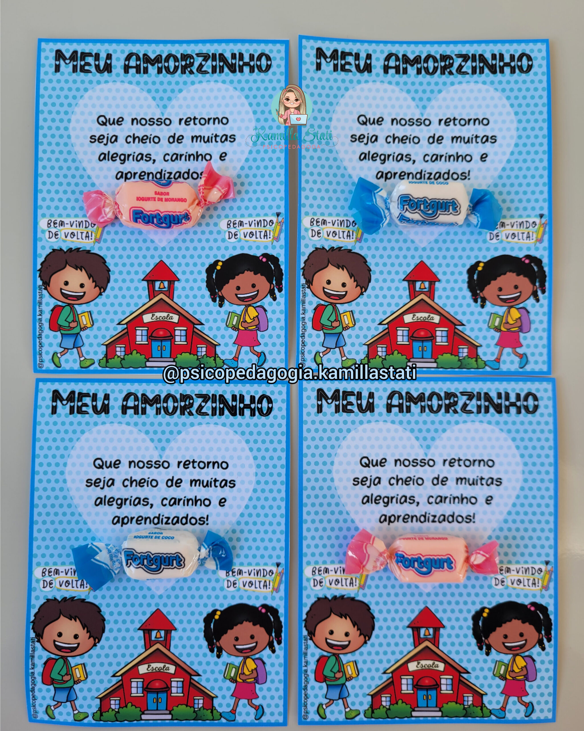 Hoje trouxe esses cartõezinhos diferenciados para ser trabalhado de forma lúdica e divertida a volta às aulas. São três cartões exclusivos que você professor pode presentear seus alunos nesse retorno tão esperado. Esse material é único, então sem dúvidas você vai arrasar e se destacar ainda mais dentro da sua escola, além de deixar o dia dos pequenos mais alegre com esse pequeno mimo. Trata-se de um arquivo em PDF pronto para impressão.