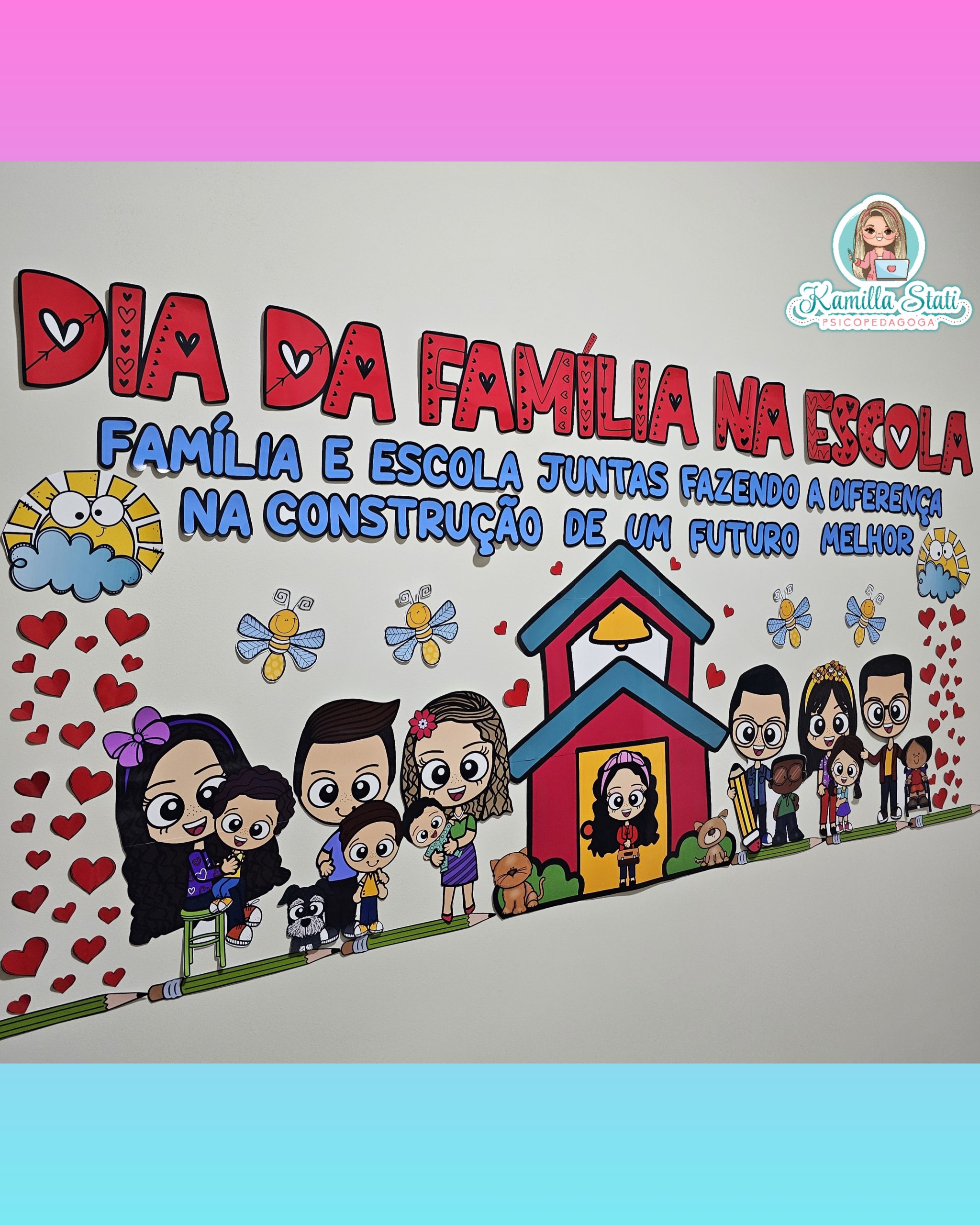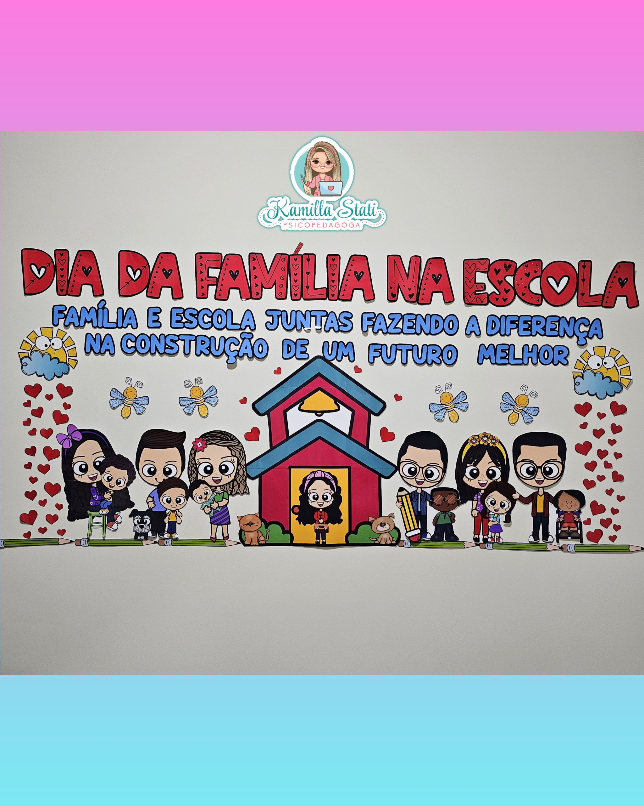 Hoje trouxe esse painel dia da família na escola exclusivo para você gestor decorar seu ambiente escolar e deixar ele lúdico e acolhedor para esse momento especial, onde receberão as famílias na escola para celebrar um grande marco!